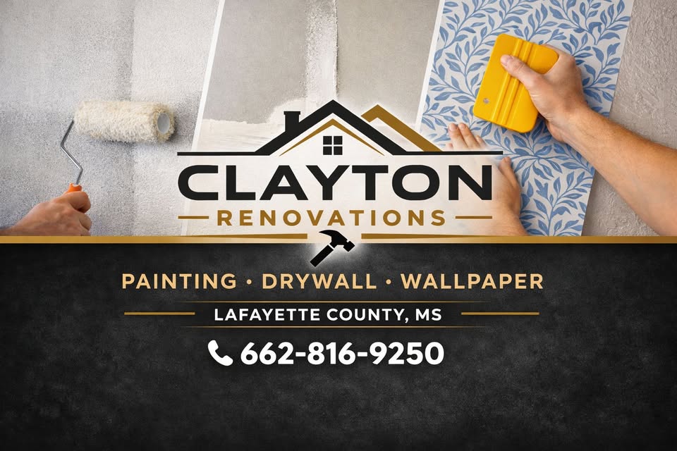 Clayton Renovations is a locally owned and trusted painting and handyman service serving Oxford and Lafayette County. We specialize in residential and commercial interior and exterior painting, along with drywall repair, pressure washing, and general home improvements. With over 65 years of experience, we deliver high-quality results on every project.